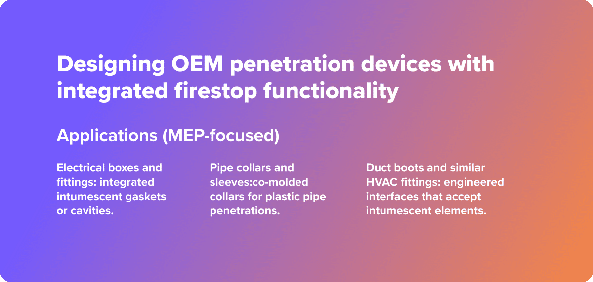 How OEMs can build in intumescent penetration seals that can be tested and, where applicable, listed in accordance with UL 1479 / ASTM E814 when installed per the listing.