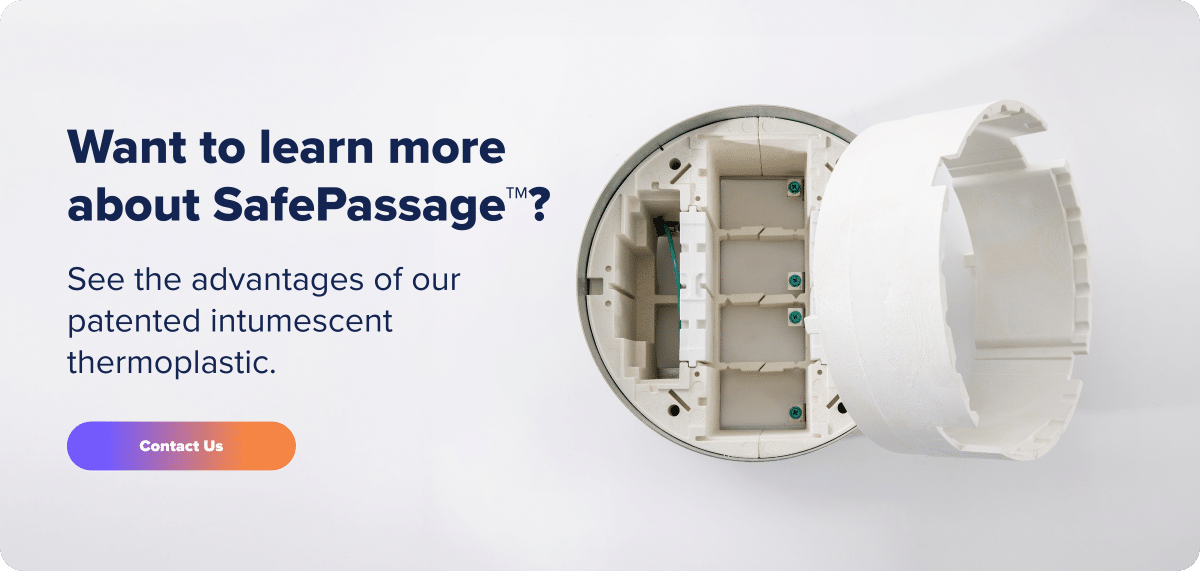 SafePassage™ is a patented, tunable thermoplastic intumescent platform OEMs can mold or extrude into their components and design to meet UL 1479 / ASTM E814 firestop requirements.